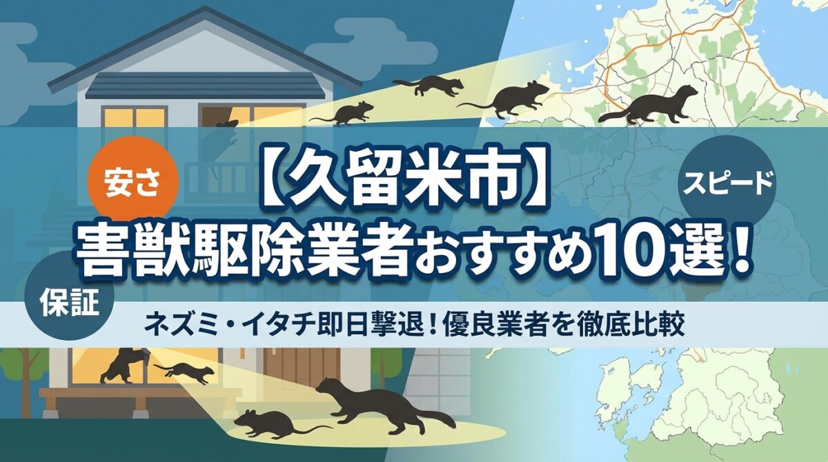 久留米市で害獣駆除を依頼するなら、「対応スピード」「料金の明瞭さ」「保証の長さ」の3つが揃った業者がおすすめです。
